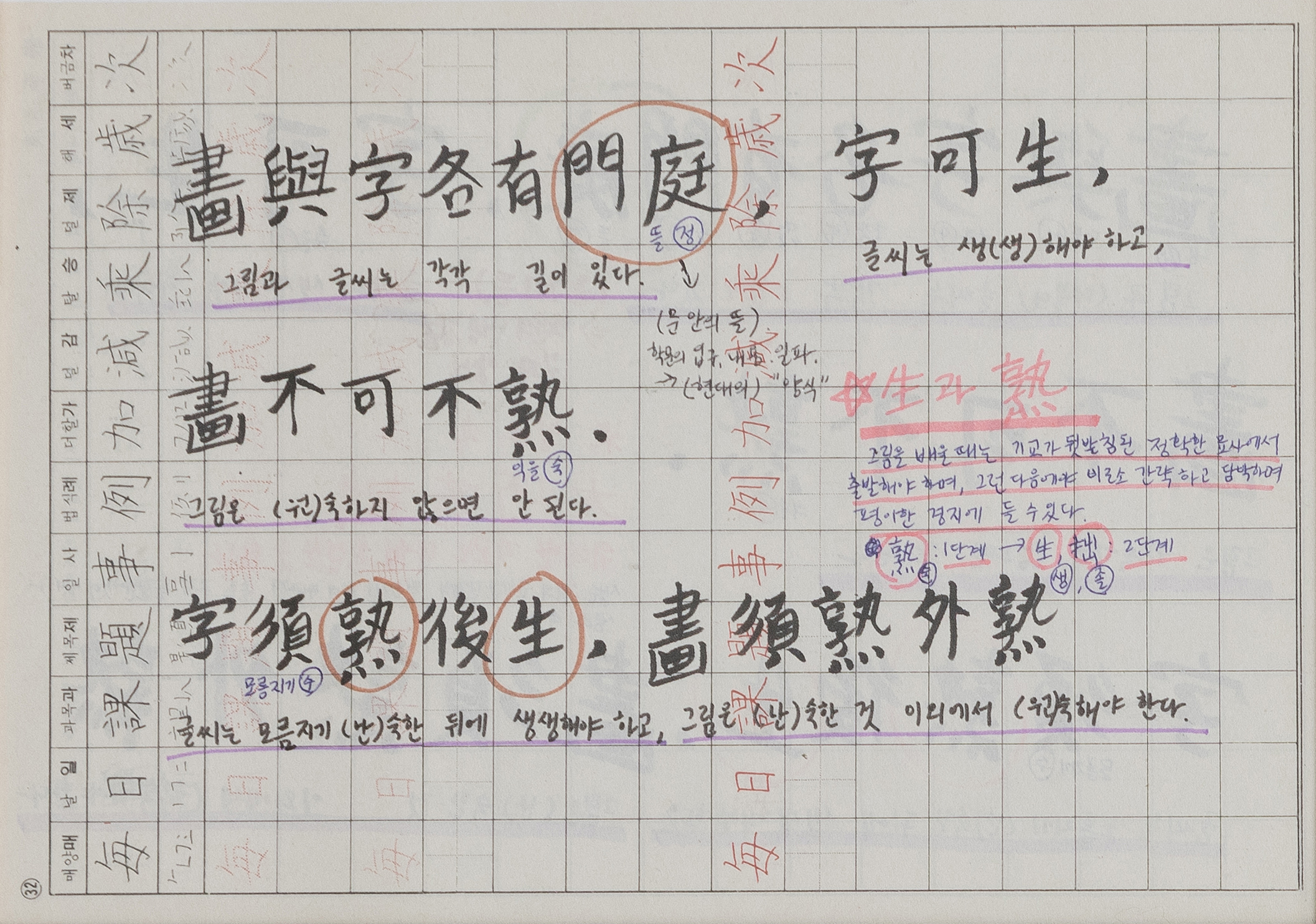 화언공부/2020/한자연습장에 잉크/각18.5x26.5cm (9pcs)